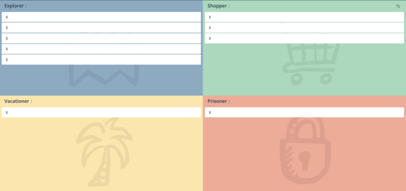 Terms that are used by some groups may not be used by others. That’s why all of GroupMap’s templates are customisable. You could, for example, change ‘Vacationer’ to ‘Observer’ if you feel that word better suits your group.
