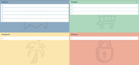 ESVP stands for ‘Explorers, Shoppers, Vacationers and Prisoners’. Participants are invited to indicate the persona with whom they most relate at that point in time.