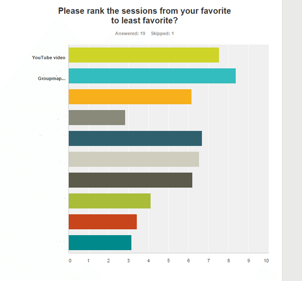 In the agenda, Dr Maletskyi includes a brief tutorial on how to use GroupMap – how to interact with the templates, and how to share ideas. He also used the Survey tool in GroupMap to get a sense of who was participating in the webinars.